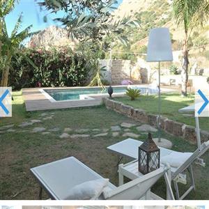 4-room house, detached, for 5 people, 100 m2, comfortable and cosy furnishings. Living room with satellite-TV, DVD and dining-table. Smoking allowed. Sleeping room with 1 single bed. Sleeping room with 1 double bed. Sleeping room with 1 double bed. Kitchenette with 4 hot plates, micro wave, oven, dishwasher, fridge and deep freezer. Shower/WC. Terrace 80 m2, terrace furniture. Other equipment: hair dryer, iron, washing machine. More information by the provider: The Villa lies into one level. It has a central body. Crossing a stretch of lush vegetation and passing trow the “Saracen olive trees” and palms, we reach the annex.