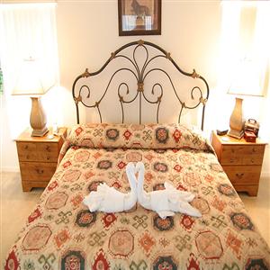 5-room villa, comfortable and luxurious furnishings: living/dining room with dining table and cable TV. Exit to the terrace. 1 room with 1 double bed (200 cm), bath/shower/WC and cable TV. 1 room with 1 double bed. 2 rooms, each room with 2 beds.