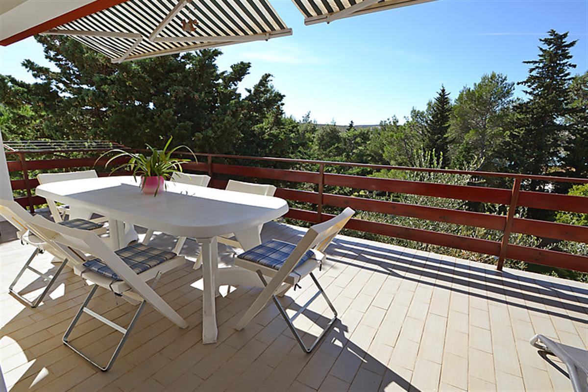 Rovanjska 10 km from Starigrad Paklenica: 2-family house. In a quiet, elevated position, 80 m from the sea, in a cul-de-sac. For shared use: garden (fenced) with trees. Patio, barbecue. Parking at the house. Shop, restaurant 200 m, pebble beach 300 m, shingle beach 80 m. Each apartment with own garden gate and car park in the courtyard.