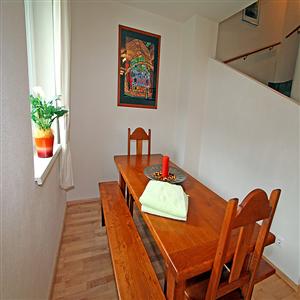 6-room terraced house 170 m2 on 4 levels, comfortable and tasteful furnishings: large living/dining room with dining table, radio and CD-player. Exit to the garden, to the terrace. Kitchen-/living room (4 hot plates, oven, dishwasher, microwave, freezer) with dining nook. Sep. WC. On the lower ground floor: living room, 1 double sofabed, satellite TV and DVD. Upper floor: 1 double bedroom, shower/WC. 1 double bedroom. Exit to the balcony. 1 small room, 2 beds. Exit to the balcony. Bath/WC. Top floor: 1 large double bedroom with sloping ceilings, shower/WC. Exit to the balcony. 2 balconies, south facing position, terrace, south facing position, garden. Terrace furniture, barbecue, deck chairs, box-room. Marvellous view of the mountains. Facilities: washing machine, dryer, baby cot. Reserved parking (4 cars). Please note: non-smokers only. The house is very roomy, the living-/dining room has an additional cosy seating area. Parquet floorings, nice wooden furnitures. Underfloor heating on the ground floors and in the bath-rooms. Please order the extra bed at the time of booking.