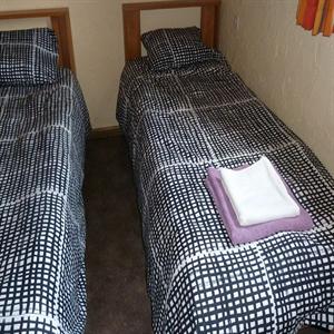 This bungalow has a living room (1 sofa beds, TV, open fire), a dining room and a small kitchen (4 hot plates, microwaves, cooker and fridge). Few stairs lead up to the 2 bedrooms (1 with 2 single beds, one with bunk beds), the shower and the toilet. French doors give access to the terrace with furniture.