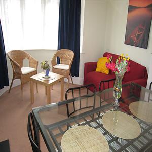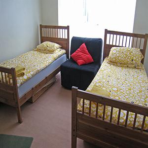 5-room terraced house on 2 levels, practical and modern furnishings: living/dining room with open-hearth fireplace, TV, radio, CD-player and DVD. 1 room with 2 beds. Exit to the garden. Kitchen (4 hot plates, oven, dishwasher, microwave). Upper floor: 1 room with 2 beds. 1 room with 1 double bed (180 cm, length 200 cm). 1 room with 1 bed. Bidet, bath/shower/WC. Gas heating. Facilities: washing machine, children's high chair. Please note: TV only EN.