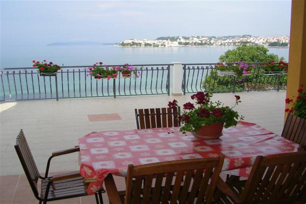 Appartment 4: Apartment number 4 is on the first floor with a hip, single room with double bed, another room with sofa bed, kitchen - (a kettle, fridge and oven), bathroom, balcony with sea view, TV-SAT and air conditioning.