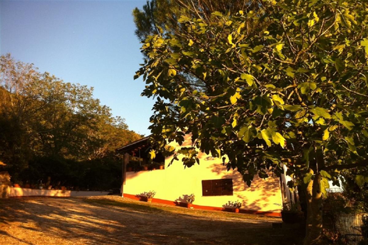 Outside, two large squares paved with porphyry tiles with rocking chairs and tables, large fireplace and wood stove. Trees, hedges, flowers, arbor, fruit trees, vegetable garden from which to draw seasonal vegetables. In the highest part of the property outside, can be accessed through a gate, a low mountain roads and trails for jogging and scenic tours.