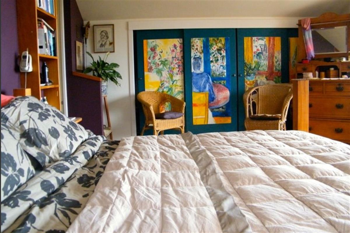 Downstairs in the open plan lounge is a large futon bed as well. This is a family home and is filled with art and colour, the moment you walk in the door you will feel relaxed.