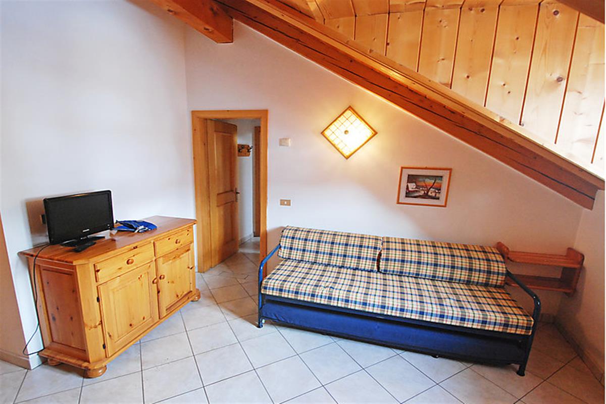 2-room apartment 45 m2, with sloping ceilings, comfortable and wooden furniture furnishings: living/dining room with 1 double sofabed and TV. 1 room with 1 double bed. Kitchenette (4 hot plates, oven). Shower/bidet/WC. Heating. View of the mountains. Facilities: washing machine, safe, hair dryer.