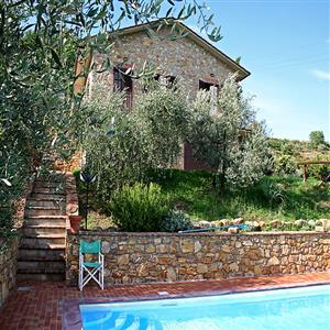 Surrounded by olive groves rustic farmhouse "Scopetino", renovated. 3 km from the centre of Ambra, 35 km from the centre of Siena, Arezzo, 60 km from the centre of Firenze, in a quiet, sunny position on a slope, in the countryside. Private: property, swimming pool (5 x 10 m, 27.05.-30.09.). Outdoor shower, garden furniture, barbecue. In the house: central heating system. Parking at the house. Grocery 3 km, shopping centre 12 km, restaurant 3 km, bus stop 3 km, railway station "Bucine" 8 km, thermal baths 25 km. A balcony with beautiful views, which on the valley side is on the 1st floor level, surrounds the house on 3 sides. Excellent home-produced organic olive oil can be purchased.