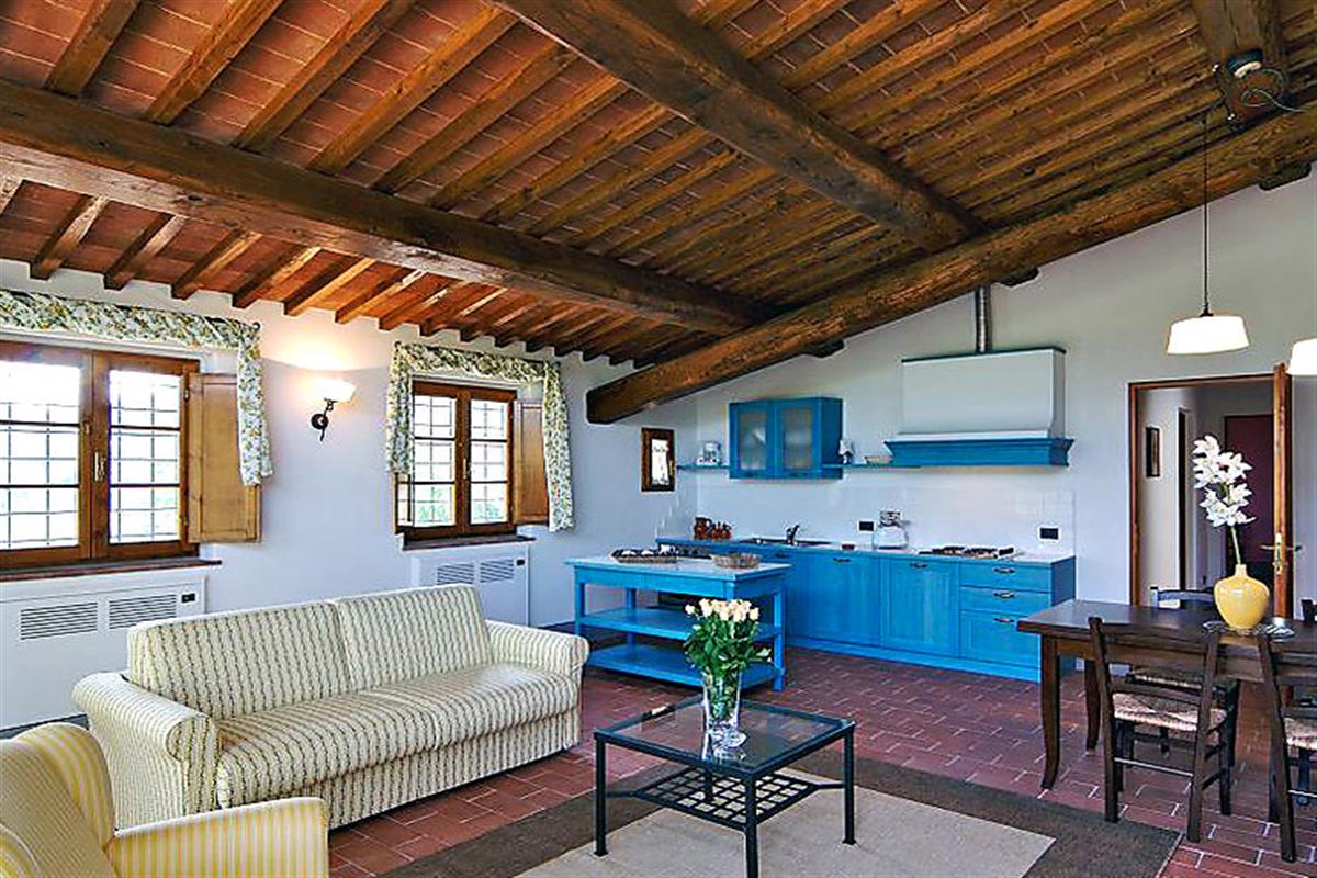 Selva di Monte 8 km from Castelfiorentino: House "Selva", renovated in 2007. 30 km from the centre of San Gimignano, 45 km from the centre of Volterra, 50 km from the centre of Firenze, in a detached, quiet, sunny position on top of a hill. For shared use: garden 5'000 m2 (fenced), swimming pool (15 x 9 m, 09.05.-19.09.). Terrace (16 m2), garden furniture, barbecue, children's playground. In the house: washing machine, tumble dryer (extra). Motor access to the house (250 m via unmade road). Parking at the house. Grocery 2 km, supermarket 8 km, railway station "Castelfiorentino" 8 km. Golf course (18 hole) 25 km