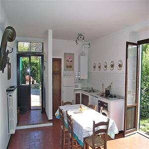 3-room apartment 70 m2, on the ground floor: living/dining room with 1 sofabed. Exit to the garden. 1 double bedroom. 1 room with 2 beds. Kitchenette (4 hot plates, oven, microwave, freezer). Shower/bidet/WC. Gas heating (extra). Terrace 45 m2 partly roofed, garden 150 m2. Terrace furniture. Maximum 1 pet/ dog allowed.
