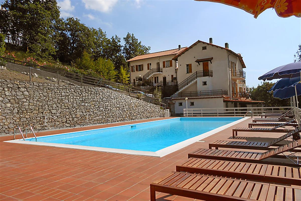 Residence "Belbea", 400 m a.s.l.. 12 apartments in the property. In the hamlet Cà de Berna 4 km from the centre of Balestrino, 17 km from the centre of Loano, in a quiet, elevated position, 12 km from the sea, in the woods. For shared use: property with plants and trees, swimming pool (16 x 6 m, 07.06.-19.09.). Outdoor shower, table tennis, boccia, parking at 50 m. Grocery 4 km, restaurant 4 km, bar 4 km.
