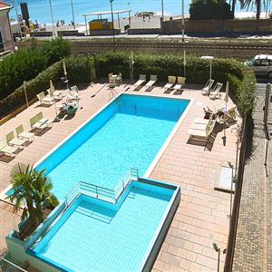 Borgio Verezzi 3 km from Finale Ligure: Beautiful residence "Le Saline", 4 storeys. 30 apartments in the residence. In a central, sunny position, 50 m from the sea, road to cross. For shared use: swimming pool (15 x 7 m, depth 60 - 200 cm, 15.04.-15.10. pool opening hours: 09:00-13:00 and 15:00-19:00). Outdoor shower, garden furniture, children's playground. In the house: reception, bar, lounge with TV, WiFi, sauna (extra). Fitness room (extra). Table tennis, playroom, lift, storage room for bicycles, sun terrace, laundry (for shared use, extra). Parking (extra), communal covered parking (extra). Shop, grocery 100 m, supermarket 200 m, restaurant, pebble beach 50 m. Please note: reception open 09:00-19:00 hrs