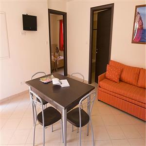 3-room apartment 38 m2 on 2 levels, beautiful furnishings: living/dining room with 1 pull-out bed (2 pers.), TV (flat screen). 1 room with 2 beds. Kitchenette (4 hot plates, oven, dishwasher, microwave, electric coffee machine). Bath/WC. Upper floor: 1 room with 1 double bed, hand-basin and shower. Terrace 10 m2. Terrace furniture. Facilities: baby cot for up to 3 year olds. Reserved parking. Suitable for families.
