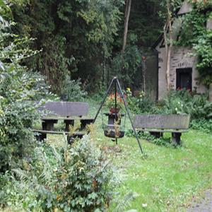 Apart from the patio next to the dining, there’s another terrace in front of the house in the inner court. And to the side of the waterwheel there’s a large common barbecue area. The large pasture behind the Wirtschaftsgebäude is accessible to everyone. Crossing the pasture you come to the banks of the Elz.