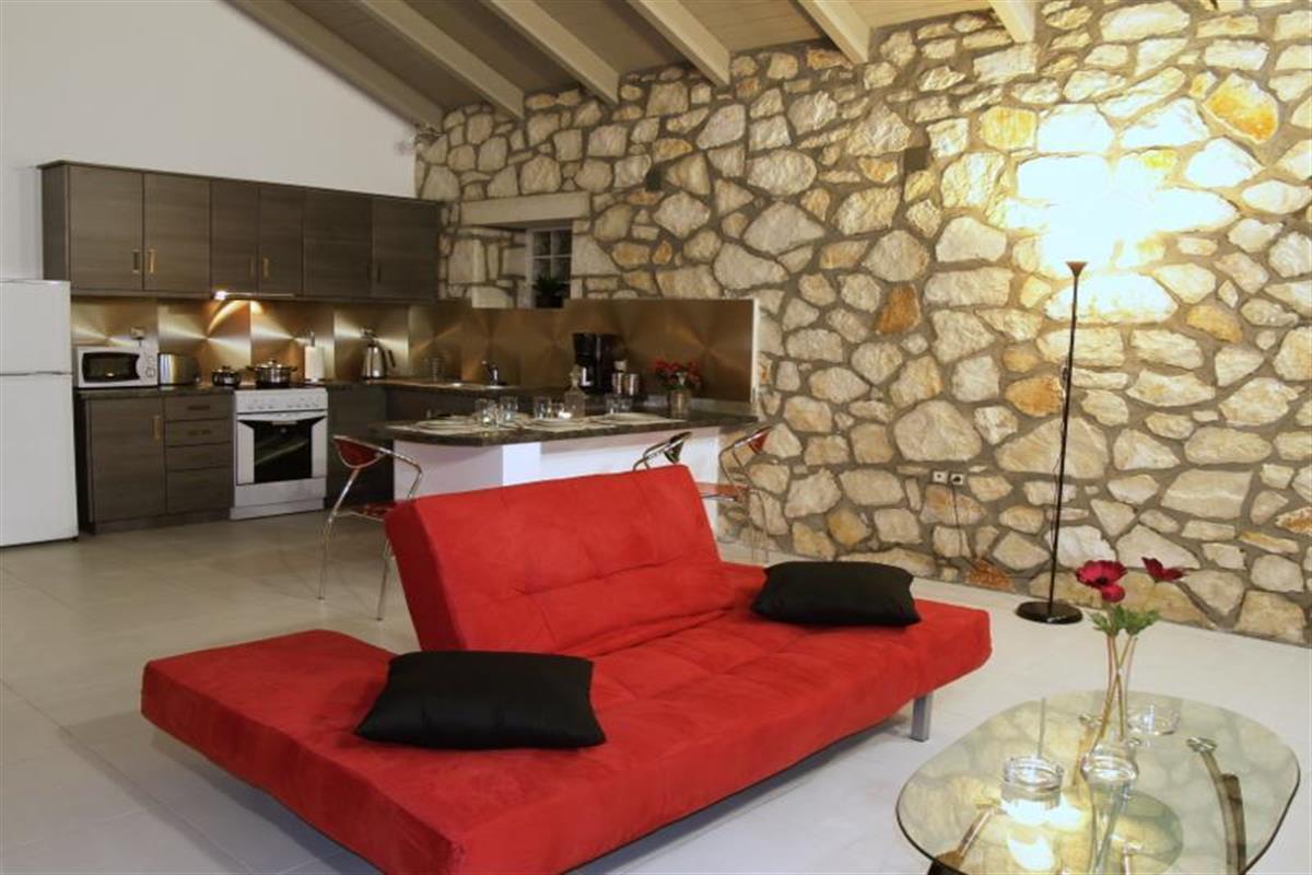 The exterior is of local natural stone in a style reminiscent of dwellings once found on the island helping to meld the new with the natural beauty of the surrounding environment, a contemporary look greets you as you step through the door, the spacious living areas of all the villas are a mix of ultra modem and traditional to give guests all the comfort and safety of a modern building but add to this with a strong sense of real homeliness.