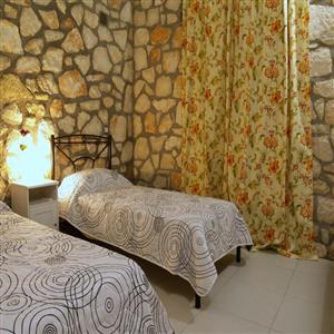 The villa is located in the village of Mouzaki close to picturesque countryside, facing green fields and the central mountain range of Vrachionas. The surrounding area is quiet, away from the main roads, but close to local amenities.A taxi rank & bus stop is only a very short walk away, here you will also find a super market, car rentals, restaurants & one of the quieter bars along with several hotels all of which welcome guests to share their amenities.We are positioned in close reach of the beaches on the south of the island where you will find miles of safe, gently shelving sand with water so clear and warm you could be in the Caribbean, yet, you are just a couple of hours from most European cities. There is wild nightlife to be had in the nearby centre of Lagana, and the stunning main town centre is a five minute drive away. The airport is close, yet, we are well away from the flight path. 'Harmony Villas' make the ideal place to stay on your holiday - close to everything when you want it while being far enough away from it all when you don`t.