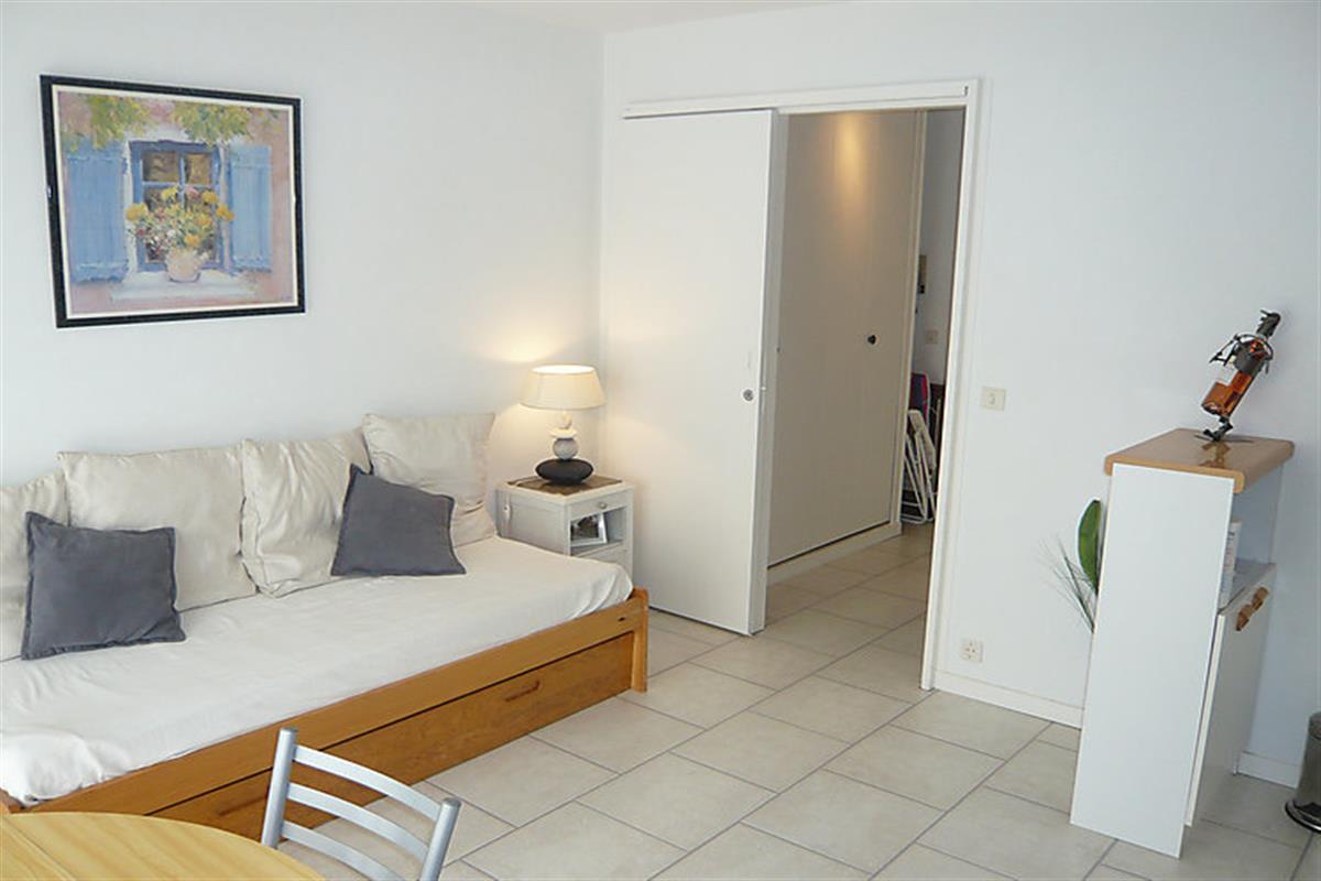 1-room apartment 20 m2 on 1st floor, south-west facing position. Living/dining room with 1 pull-out bed (2 x 90 cm), TV. Exit to the balcony. Kitchenette (4 hot plates, microwave, electric coffee machine). Shower/WC. Electric heating. Parquet floors. Balcony 4 m2. Terrace furniture, balcony furniture, deck chairs (1)
