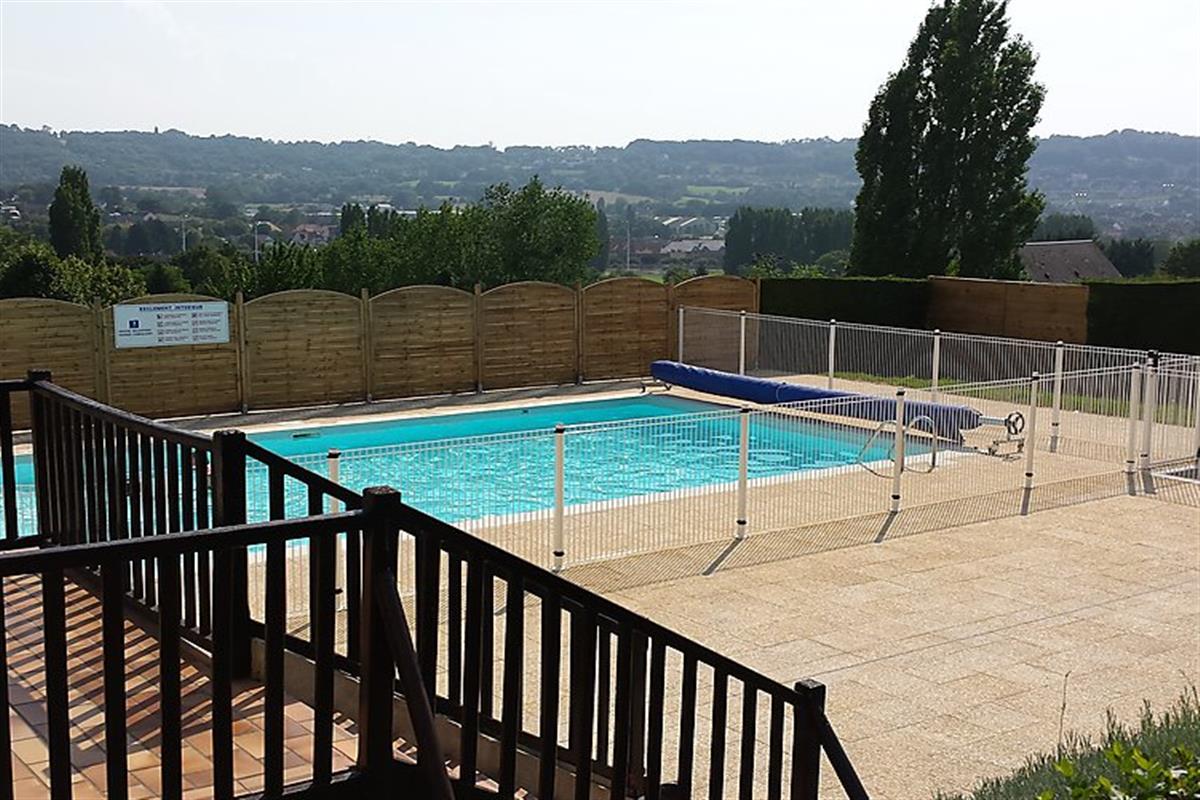 Residence "La Cour du Moulin". Outside the resort, 2 km from the centre of Houlgate, in a quiet position on a slope, 1.8 km from the sea. For shared use: swimming pool heated (depth 50 - 190 cm, 15.06.-30.09.). Poolhouse with shower and WC, tennis, parking. Shop 1.5 km, restaurant 1.5 km, sandy beach 1.8 km. Golf course 400 m.