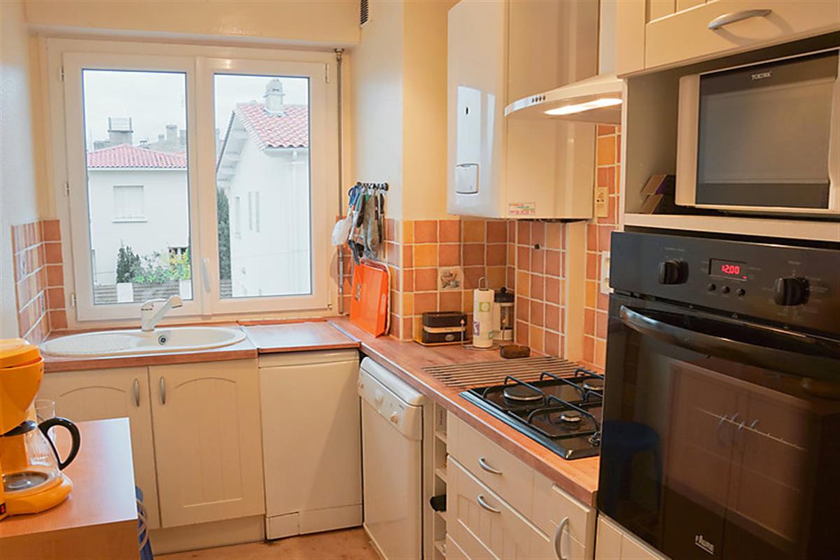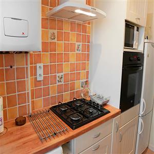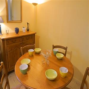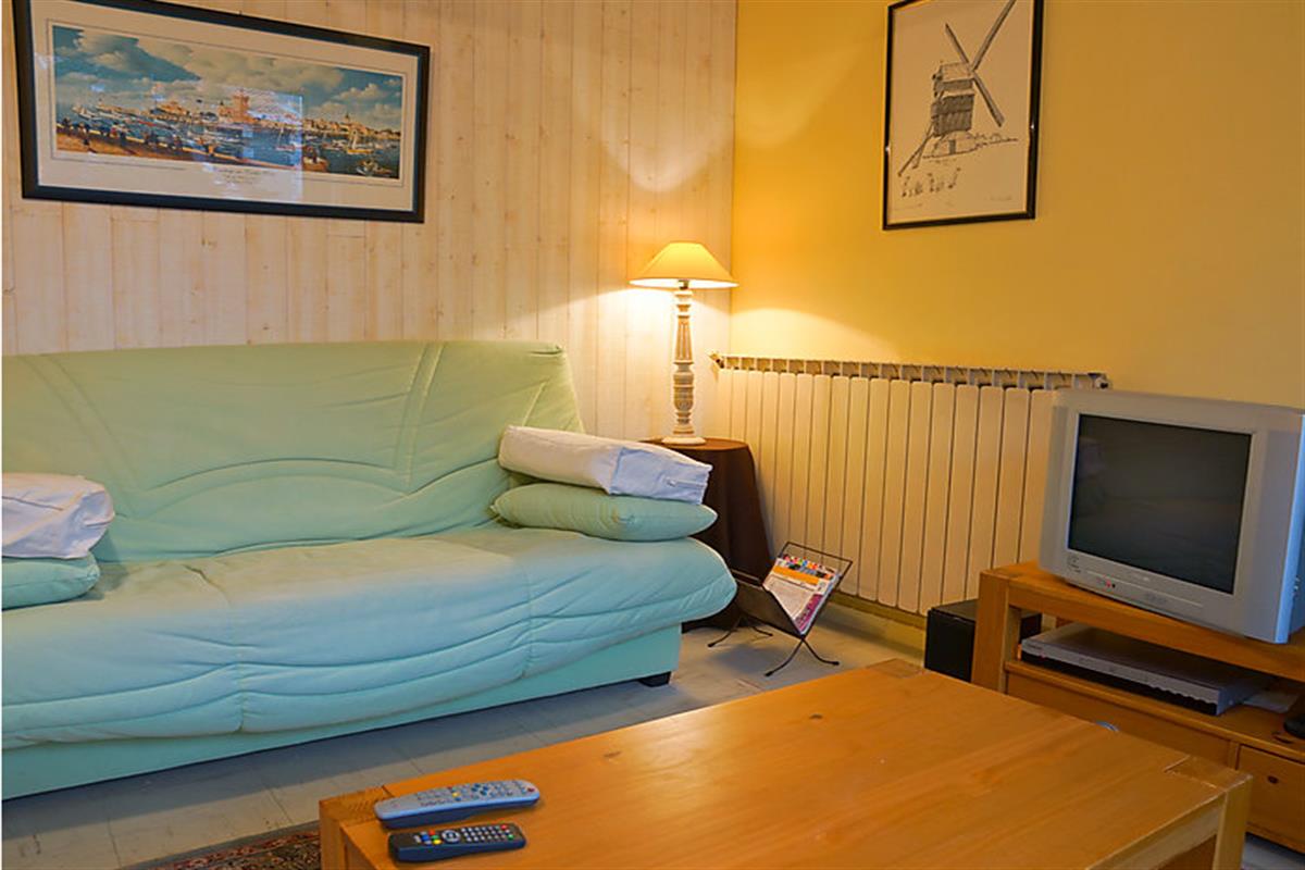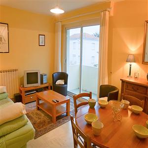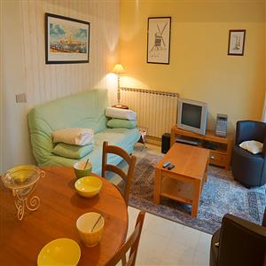3-room apartment 64 m2 on 1st floor: living/dining room with TV, hi-fi system and DVD. 1 room with 1 bed (90 cm), 1 double bed. 1 room with 1 double bed. Kitchen (4 hot plates, oven, dishwasher, microwave, freezer). Bathroom, sep. WC. Small balcony. Facilities: washing machine. Reserved parking.