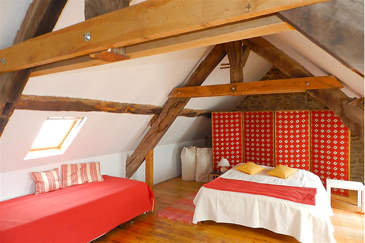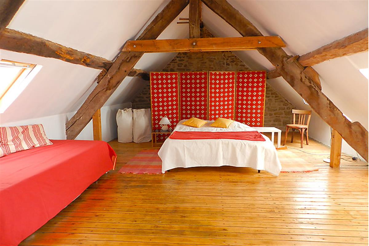 Brecé 20 km from Mayenne: Small, cosy, simple terraced house "La Charbonnière", surrounded by meadows and fields. In a hamlet. Private: property 2'000 m2, garden 700 m2. Motor access to the house (via unmade road). Parking at the house. Shop 4 km, grocery 4 km, restaurant 4 km, outdoor swimming pool 3.5 km. Nearby attractions: Mayenne 20 km, Fougères 35 km, Laval 50 km, Avranches 68 km, Le Mont Saint-Michel 74 km, Rennes 85 km. Well-known lakes can easily be reached: Etang neuf de Juvigné, Vallée de l'Erve.
