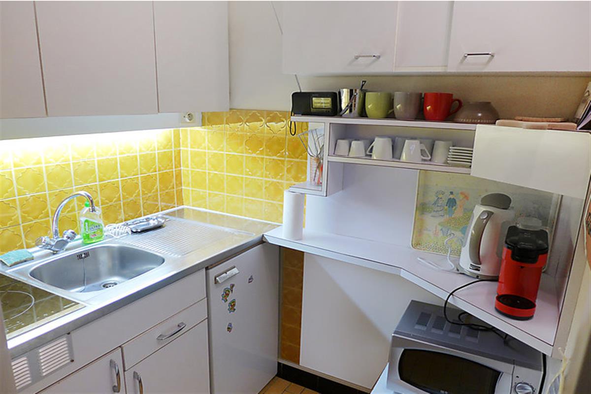 1-room studio 30 m2 on 3rd floor. Comfortable and beautiful furnishings: living/sleeping room with 1 double sofabed (1 x 140 cm), 1 double fold-away bed (1 x 140 cm), TV (flat screen), DVD. Exit to the balcony, south facing position. Small kitchen (2 induction hot plates, microwave). Shower/WC. Balcony. Beautiful view of golf course. Facilities: washing machine. Internet (WiFi). Reserved parking.