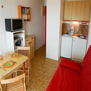 2-room apartment 30 m2 on 1st floor: living/dining room with 1 double sofabed and TV. 1 room with 1 x 2 bunk beds. Kitchenette (2 hot plates, mini-oven). Bath/WC. Balcony. Terrace furniture. View of the sea. Reserved parking space n 52. Maximum 1 pet/ dog allowed.