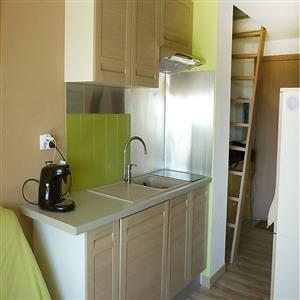 3-room apartment 46 m2 on 2 levels on 2nd floor. Bright, renovated, beautiful furnishings: living/dining room with digital TV, flat screen and electric heating. Exit to the terrace. 1 children's room 7 m2, window onto the courtyard with 2 x 1 bunk beds (90 cm). Open kitchen (mini-oven, oven, dishwasher, 2 induction hot plates, microwave, freezer, electric coffee machine). Bathroom, shower/WC. Electric heating. Upper floor: (steep stair), 1 room 15 m2, with sloping ceilings, ceiling height 97 - 165 cm, window onto the courtyard with 1 double bed (140 cm). Terrace 7 m2. Very beautiful view of the sea and the swimming pool. Reserved parking space n 161.
