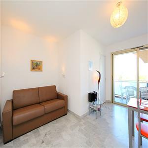 1-room apartment 27 m2 on 4th floor, bright: living/sleeping room with 1 sofabed (140 cm, length 190 cm), flat screen, hi-fi system and DVD. Exit to the terrace. Kitchen (2 ceramic glass hob hotplates, microwave, combination microwave). Bath/WC. Electric heating. Terrace 8 m2, south-east facing position. Terrace furniture. Partial view of the sea. Facilities: washing machine. Garage space n 81