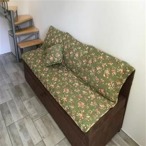 The apartment area is 30m2 with 2 floors and it is intended for 3 persons with extra French bed. The apartment is newly furnished.
