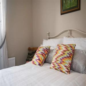 Guests can access the entire cottage. Along with the three bedrooms and one bathroom, there is a compact kitchen, a large sitting/dining room with a solid fuel stove with back boiler, and a TV. Guests are welcome to enjoy breakfast items, (a variety of cereals, tea/coffee, juice, fruit, bread, and home-made scones or wheaten bread). The bathroom has a full sized bath with an overhead electric shower. The kitchen has a fridge with a box freezer, a washing machine, a full-sized gas cooker, and a kettle, toaster and microwave. There is ample private parking and storage for bicycles and other sporting equipment. The house also has an oil-fired central heating system, operated by a pay-as-you-go metre after the daily allowance has been used.