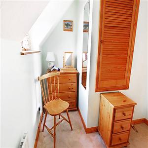 3-room terraced house on 2 levels, bright, simple furnishings: open living/dining room with TV (flat screen), CD-player and DVD. Kitchen (4 hot plates, oven, microwave). Upper floor: 1 double bedroom. 1 room, 2 beds (1 x length 76 cm). Bathroom, shower/WC. Terrace furniture. Facilities: washing machine. Internet (WiFi, free).