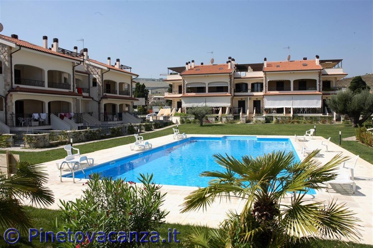 This complex is in the south of Pineto. These apartments are located on different floors. Elegantly furnished, these nice apartments are well-equipped with a lot of comforts: air condition, a large terrace, private car park and a beautiful swimming pool. Two-room apartment: living-room with kitchenette and sofa bed, a bedroom with a double bed and a bathroom with shower.